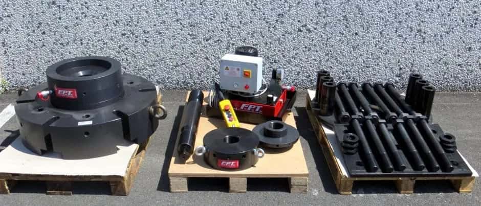 • Standart sistem, 10 mm itme kuvveti ve 700 bar maksimum basınç ile 34 kN'luk 4 adet FPT Sıcak Cıvata, bir adet FPT model PMSA2 manuel pompa, manifoldlar, borular, bağlantılar ve çalıştırma aksesuarlarından oluşur. Her Sıcak Cıvata, korozyona karşı koruma sağlamak için özel bir işleme tabi tutulmuştur. Ürün kodu: KIT-4HBRC-35