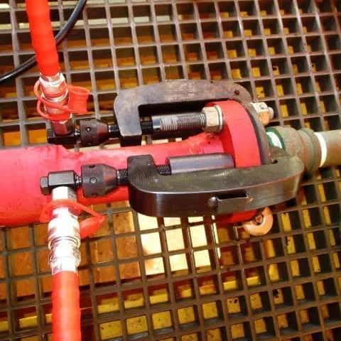 • Sıcak cıvata kelepçesi, bağlantının bütünlüğünü korumak ve aynı zamanda aşınmış veya hasar görmüş saplamaları değiştirmek için kullanılır.
